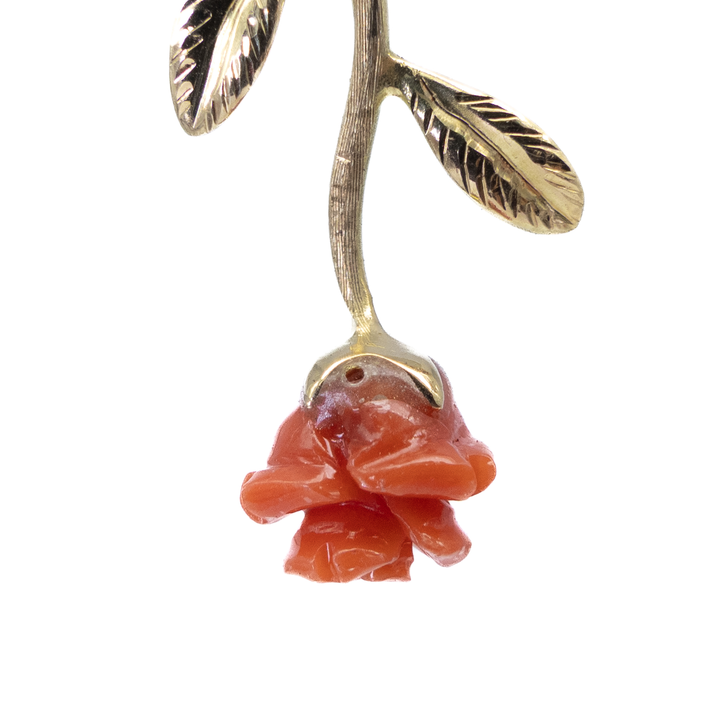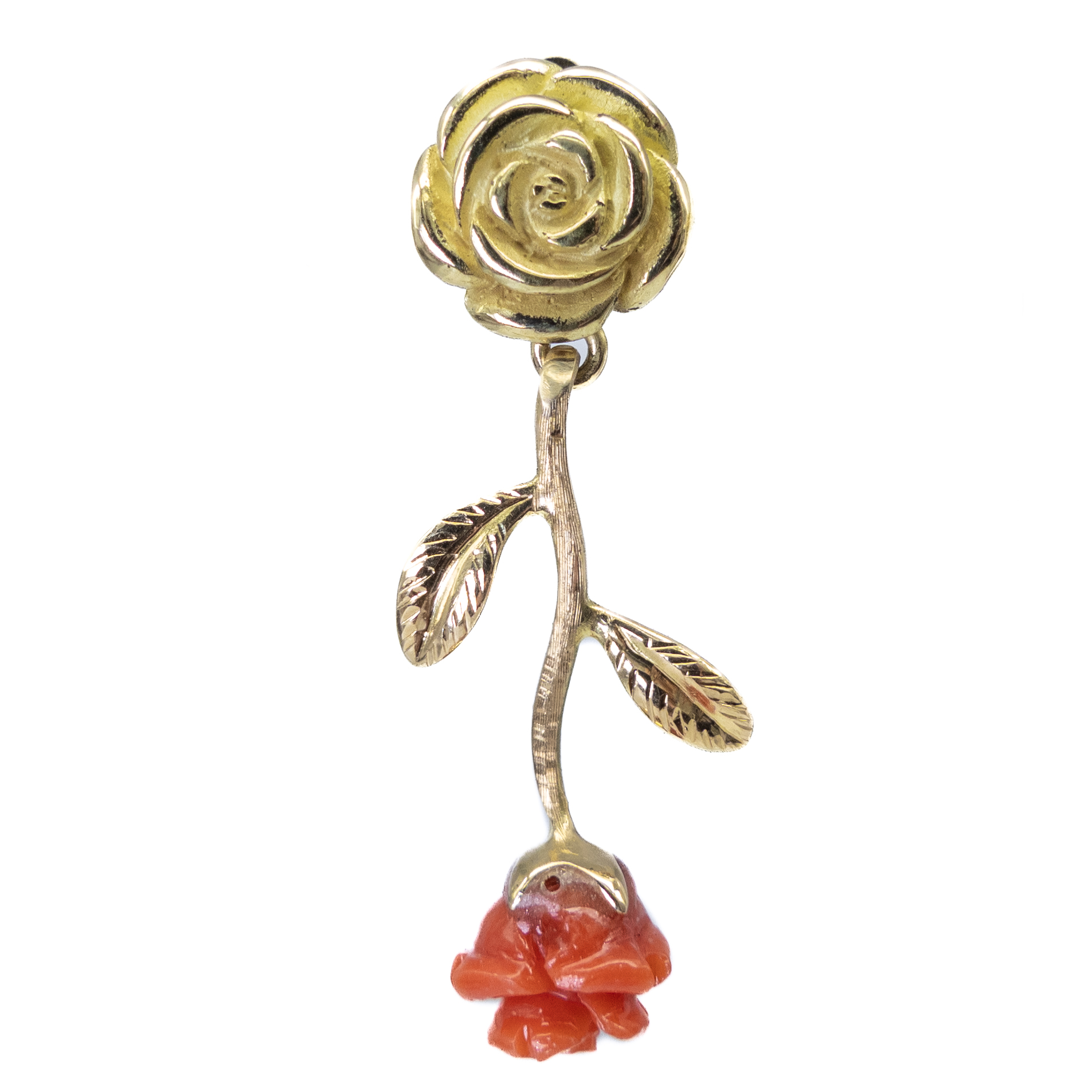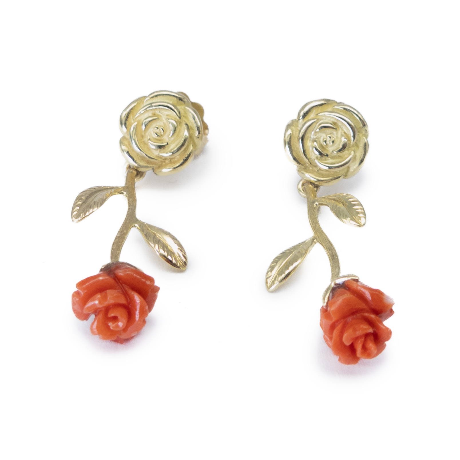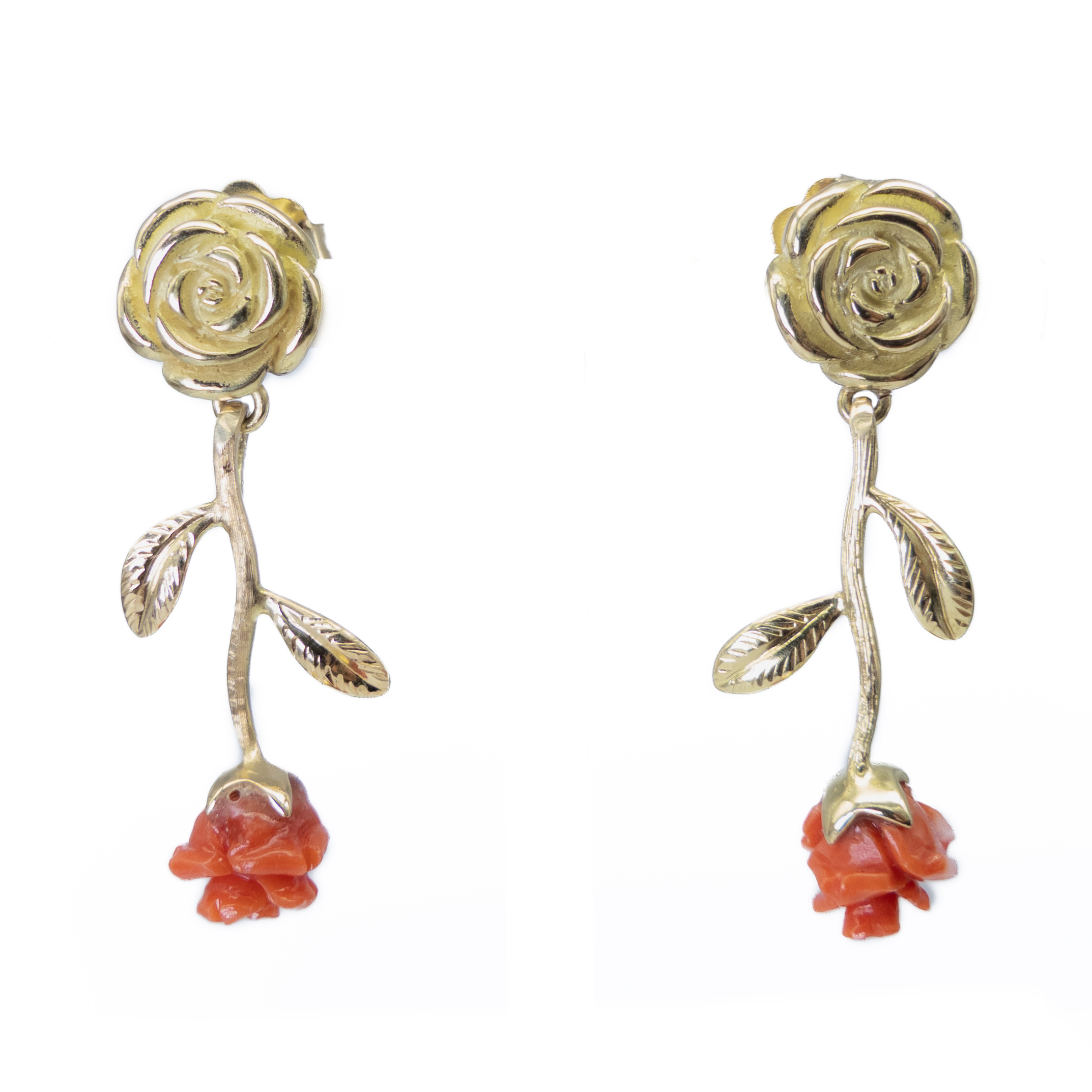 Pendientes de oro amarillo de 18k y rosas de coral rojo.
